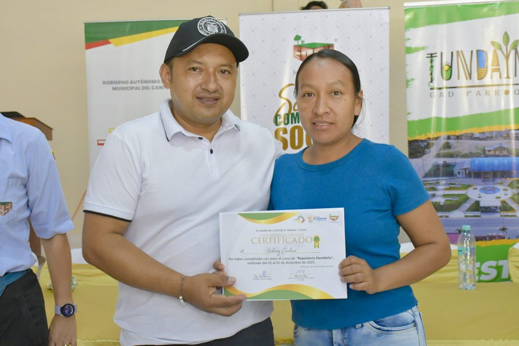 Odalia Bonilla, una de las participantes de los cursos, agradeció a las instituciones organizadoras por permitirles aprender y compartir sus talentos: “estos cursos que se dan los acogemos con mucho gusto, mi agradecimiento espacialmente es para la Alcaldía, al GAD de Tundayme y a ECSA por darnos la oportunidad de capacitarnos y por pensar en la comunidad. Hoy nos llevamos nuevos conocimientos que podremos aplicar en nuestras familias y futuros emprendimientos,” manifestó.