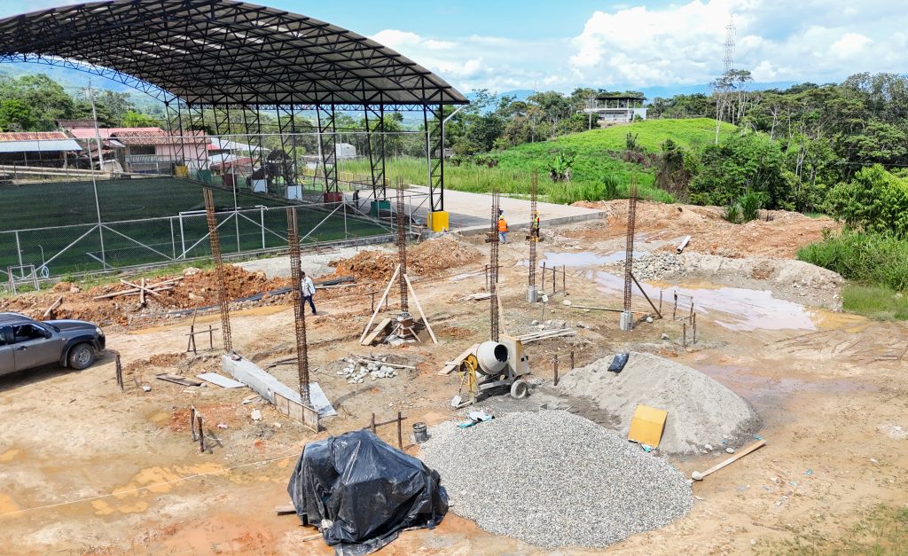 La obra se ejecuta en tres fases que contemplan la construcción de un comedor y baterías sanitarias, la implementación de una cancha de ecuavoley, trabajos de drenaje, bordillos y la colocación de una capa de pavimento destinada a la circulación peatonal en el área de graderíos, garantizando espacios funcionales y seguros para los usuarios.
